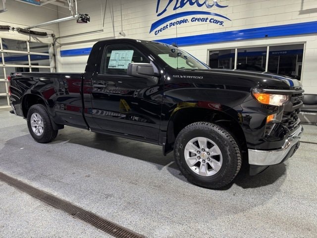 2026 Chevrolet Silverado 1500 WT EcoTec3 5.3L V8, 10-Speed Automatic, 4WD, Black **REAR VIEW BACKUP CAMERA***HANDS FREE MOBILE***APPLE CARPLAY** Jet Black Vinyl, 3.5 Monochromatic Display Driver Info Center, 4-Way Manual Driver Seat Adjuster, 40/20/40 Front Split Bench Seat, Bluetooth® For Phone, Chevytec Spray-on Black Bedliner, Electric Rear-Window Defogger, Electronic Cruise Control, Front Frame-Mounted Black Recovery Hooks, HD Rear Vision Camera, Heated Power-Adjustable Outside Mirrors, Hitch Guidance, Inside Rearview Mirror with Tilt, Locking Tailgate, Manual Tailgate Function with No EZ Lift, Preferred Equipment Group 1WT, Premium audio system: Chevrolet Infotainment 3, Remote Keyless Entry, Rubberized-Vinyl Floor Covering, SiriusXM Delete, Standard Suspension Package, Tire Pressure Monitoring System, Trailering Package, Vinyl Seat Trim, Wheels: 17 x 8 Ultra Silver Painted Steel, WT Convenience Package, WT Value Package. Price includes: $1500 - GM Bonus Cash. Exp. 03/02/2026 $3250 - Chevrolet Consumer Cash Program. Exp. 03/02/2026
